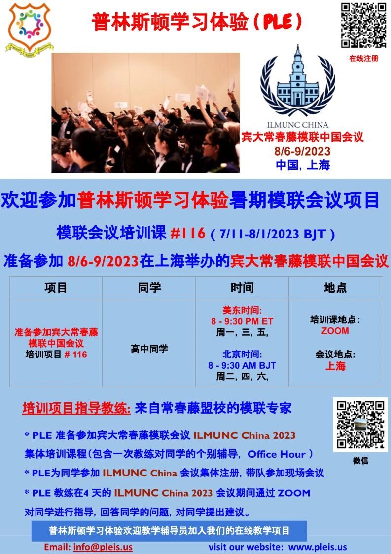 宾夕法尼亚大学 ( PENN )安排暑期 (8/6-9/2023)在上海举办模拟联合国( Model UN )会议。这是疫情后 这个老牌常春藤盟校在中国举办的第一次关于 MUN 的会议( ILMUNC China 2023 ), 这是同学们提高自己的教育背景和领导力水平的高效率和高性价比的暑期活动,特别适合暑期在中国的同学参加。