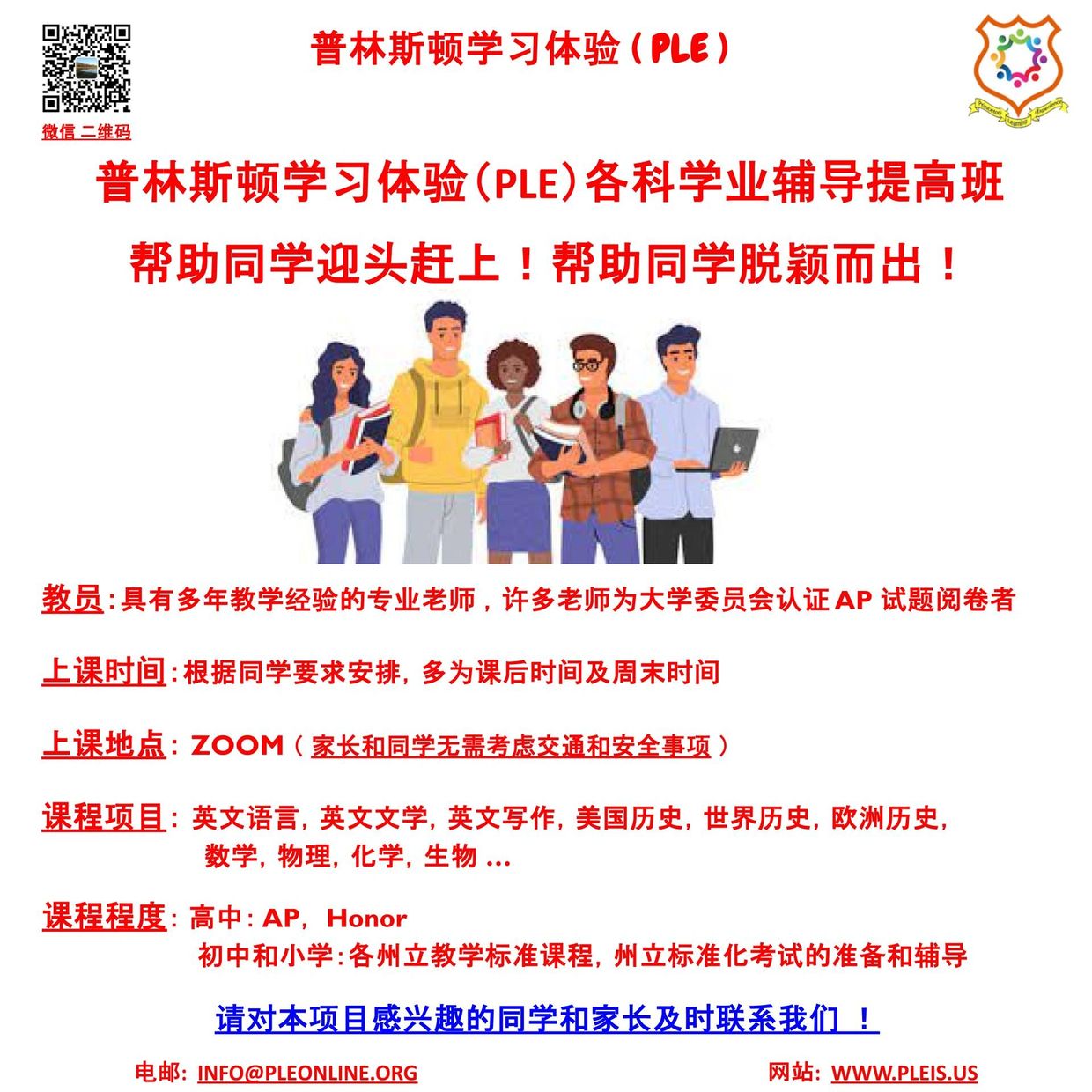 为帮助家长和学生应对这些挑战,实现对卓越教育的追求,普林斯顿学习体验(PLE) 特别开设了小班制学业辅导项目。项目覆盖小学至高中的各个阶段,由专业教师提供针对性辅导,内容包括:日常作业指导、学校考试和州立考试备考支持等。
